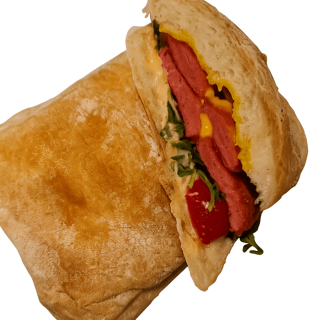نان چاپاتا + بیکن+ تخم مرغ + سس مخصوص