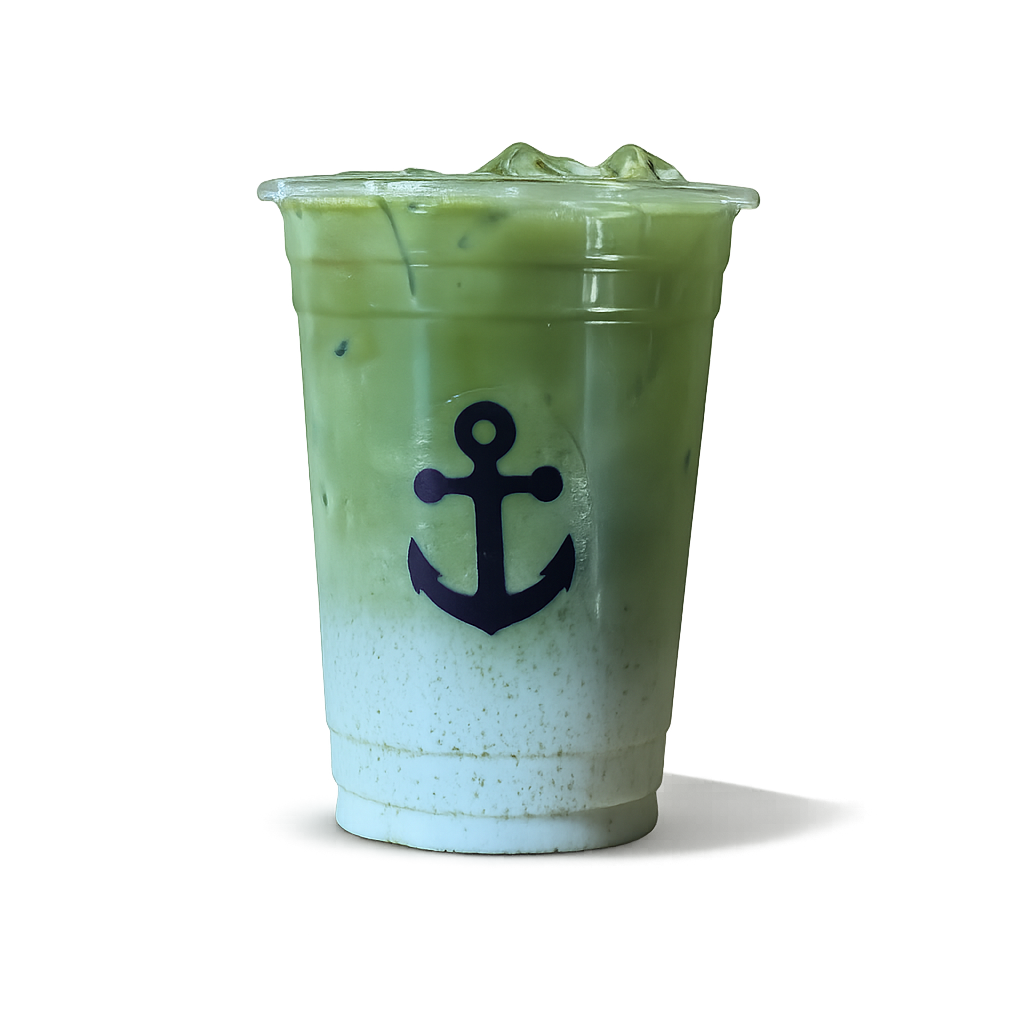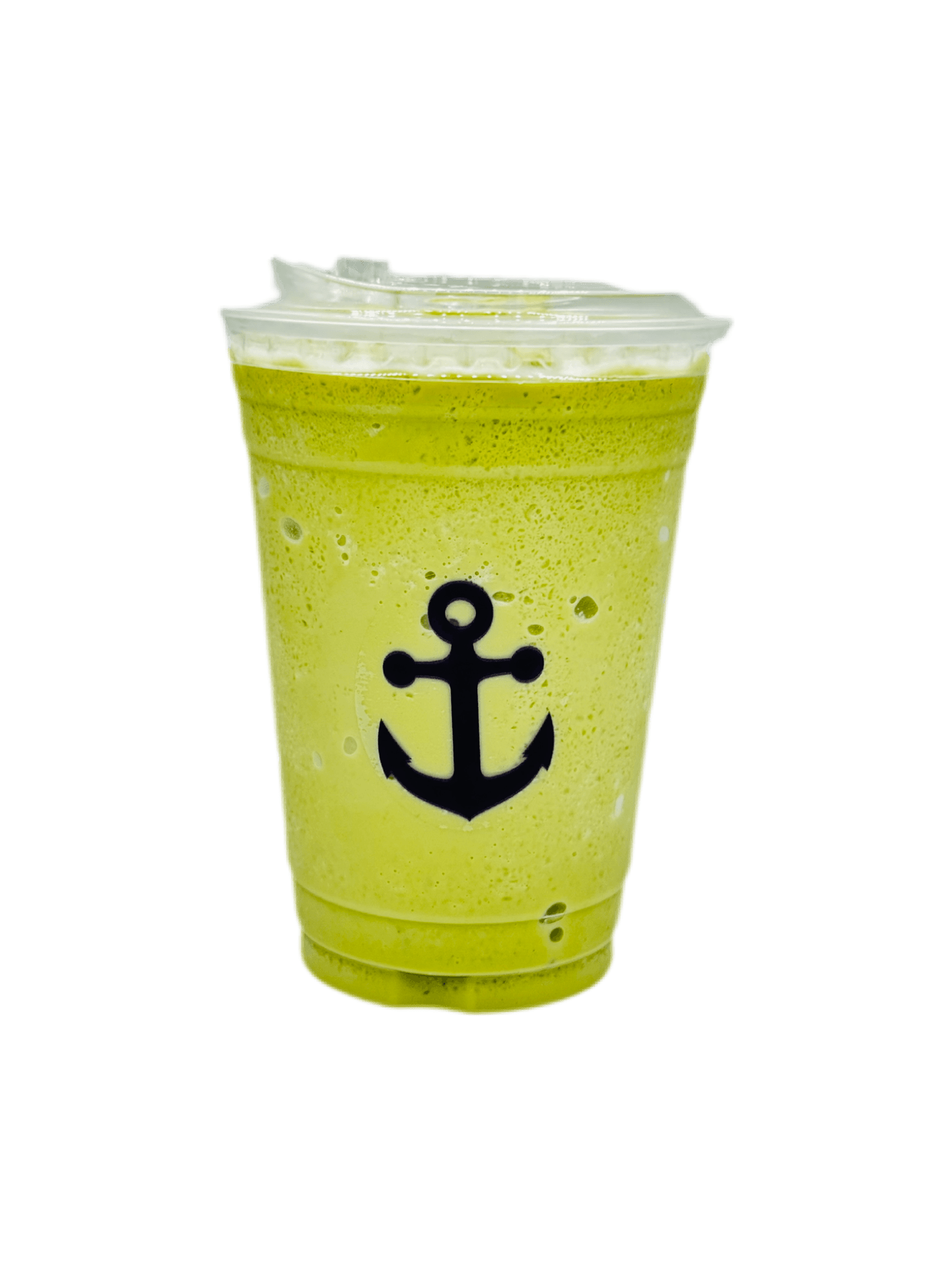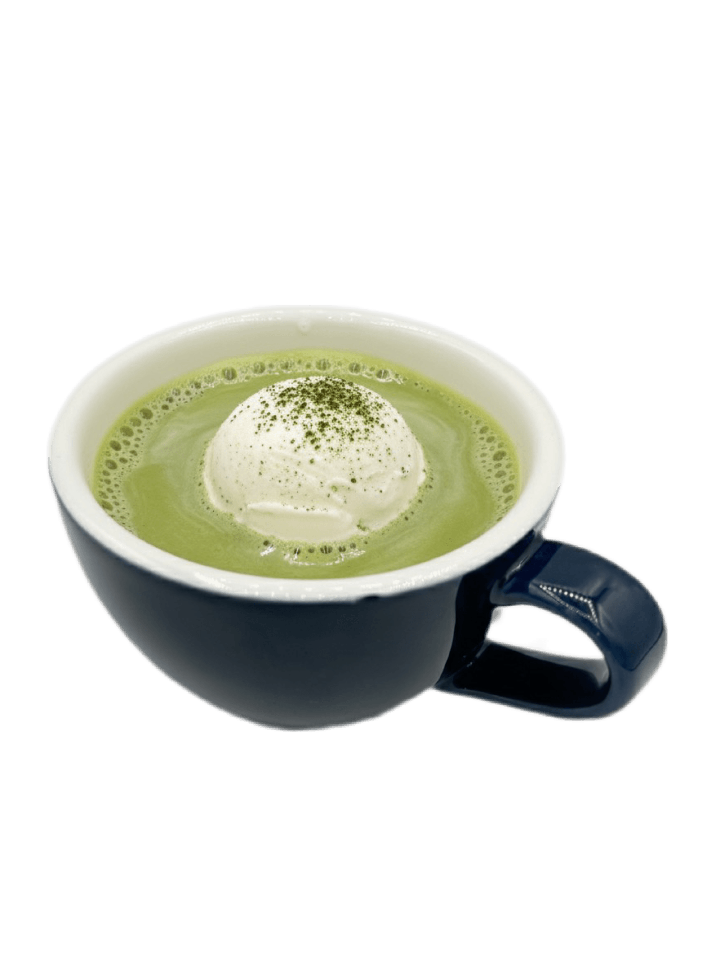 یک شات ماچا + شیر + بستنی + یخ +سیروپ وانیل
